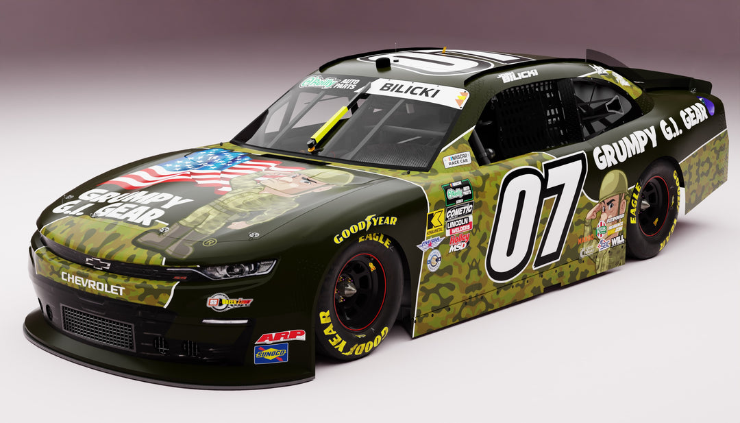 We’re thrilled to announce that Grumpy G.I. Gear will be sponsoring the #07 NASCAR, driven by Josh Bilicki, at the iconic Circuit of the Americas (COTA) on February 28, 2026. Our brand’s bold, military-inspired style takes center stage on this high-speed ride, showcasing the perfect blend of precision, power, and attitude — just like our gear. Get ready to witness adrenaline-fueled action as our camo-themed NASCAR roars around America’s premier racing circuit!