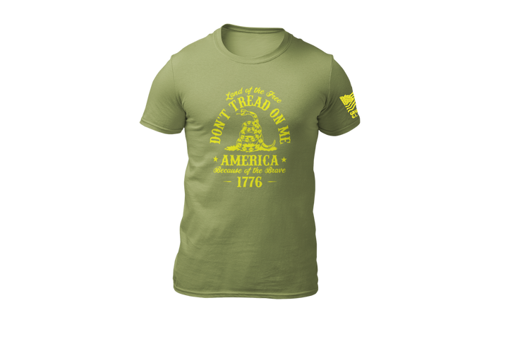 The “Don’t Tread On Me 1776” tee is a salute to the fearless spirit that built this nation. Featuring the iconic Gadsden snake and the proud declaration “Land of the Free — Because of the Brave”, this shirt embodies the timeless message of liberty, independence, and strength.