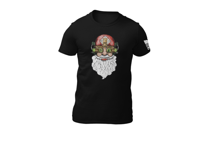 The “Tactical Santa” tee brings Christmas cheer with a combat-ready twist. This isn’t your average jolly old Saint Nick — this Santa’s scanning rooftops through night vision goggles and locking on target to deliver freedom one present at a time.